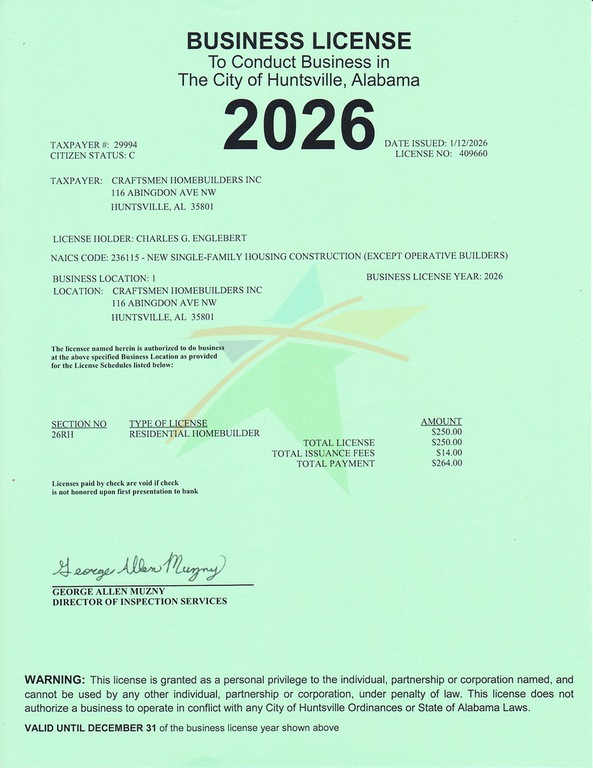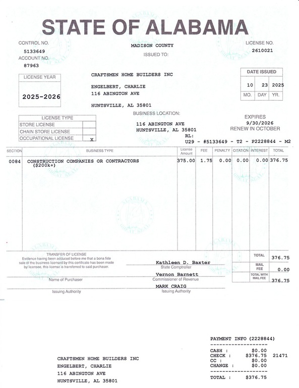 Search by business name Craftsmen Homebuilders Inc.
